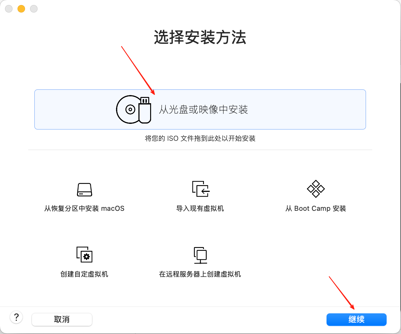 选择我们刚刚下载的映像文件之后,点击继续按钮