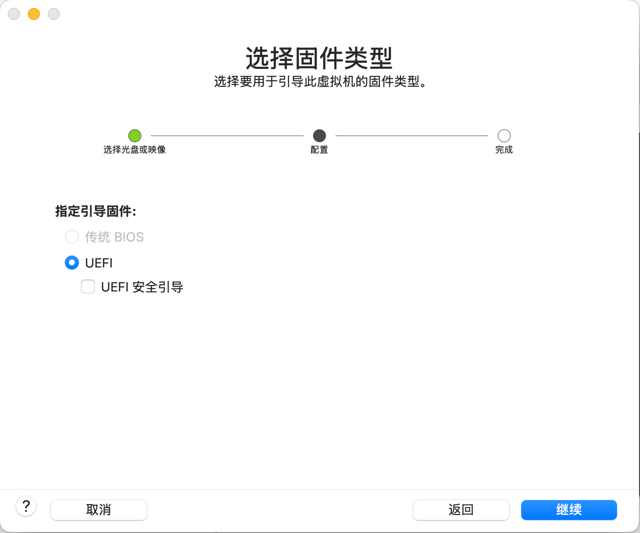 固件类型保持默认选项,即 UEFI,点击继续按钮