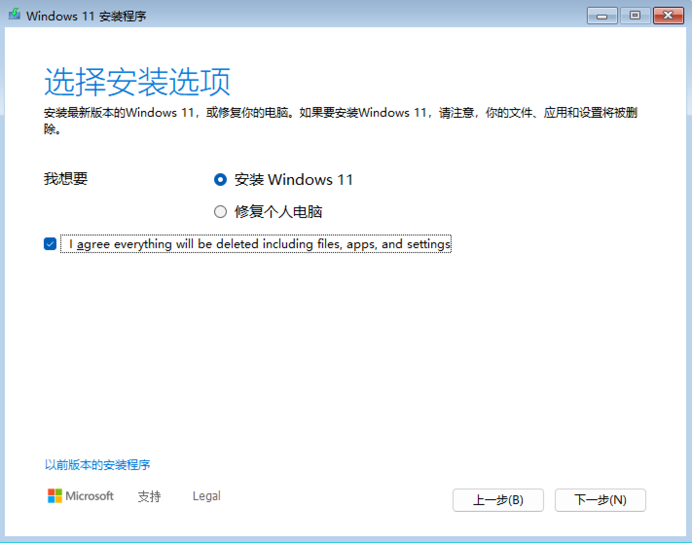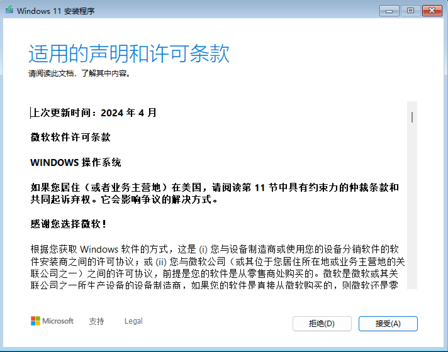 选择安装 Windows11,勾选 I agree….,点击下一步: