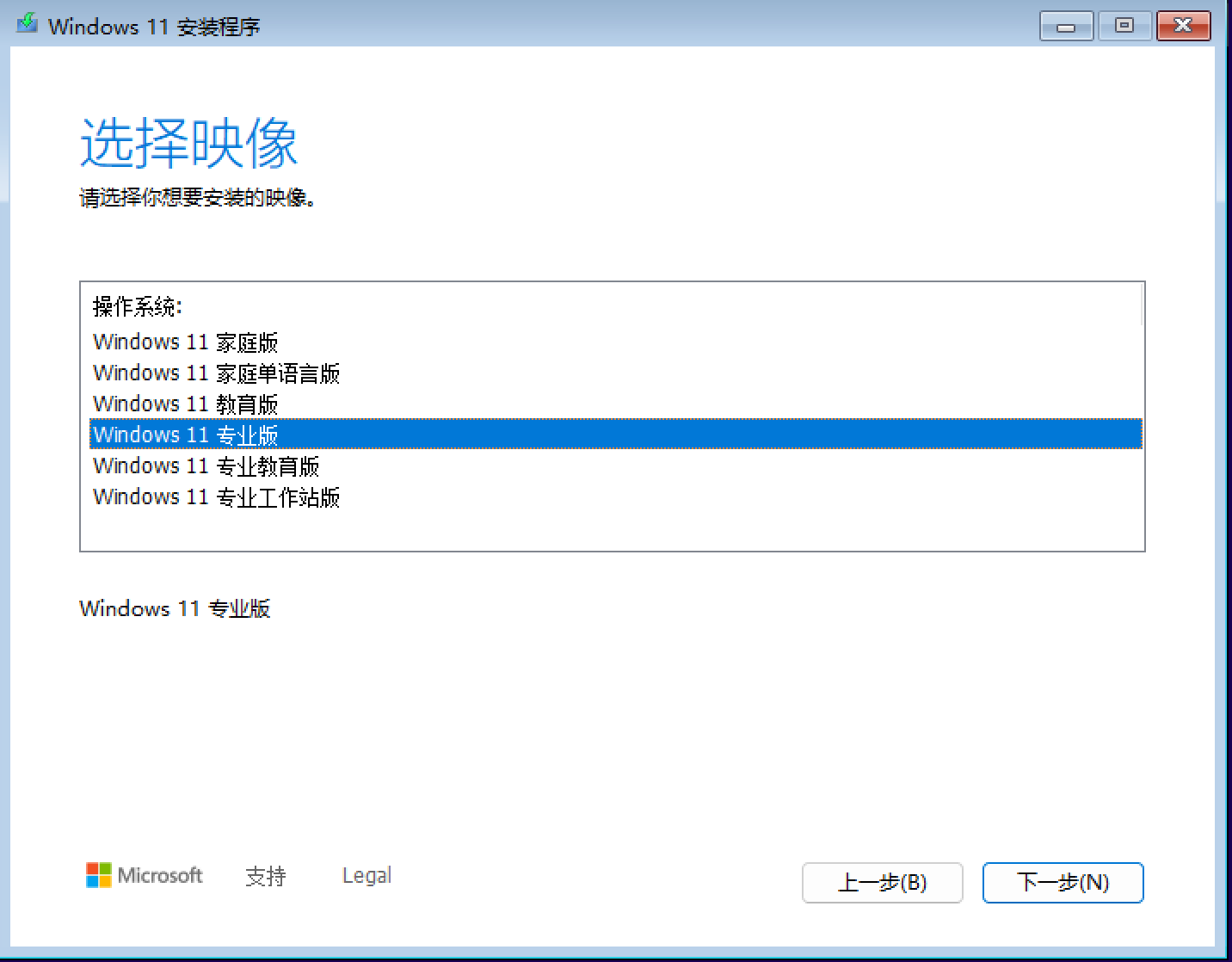 接下来选择安装的 Windows 版本,此处选择Windows 11 专业版,点击下一步。